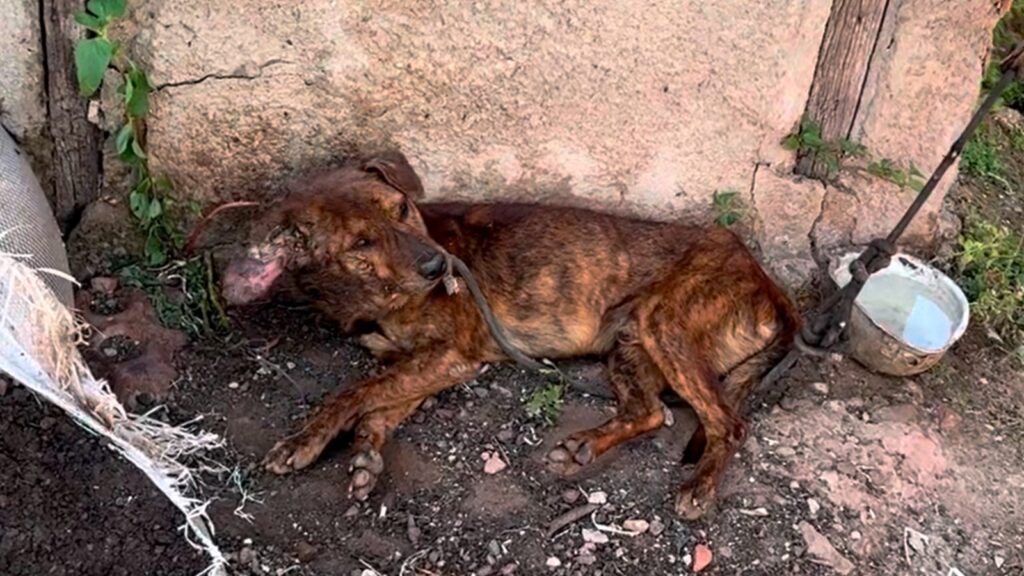 Cachorro acorrentado e com ferida grave é resgatado em Santa Maria